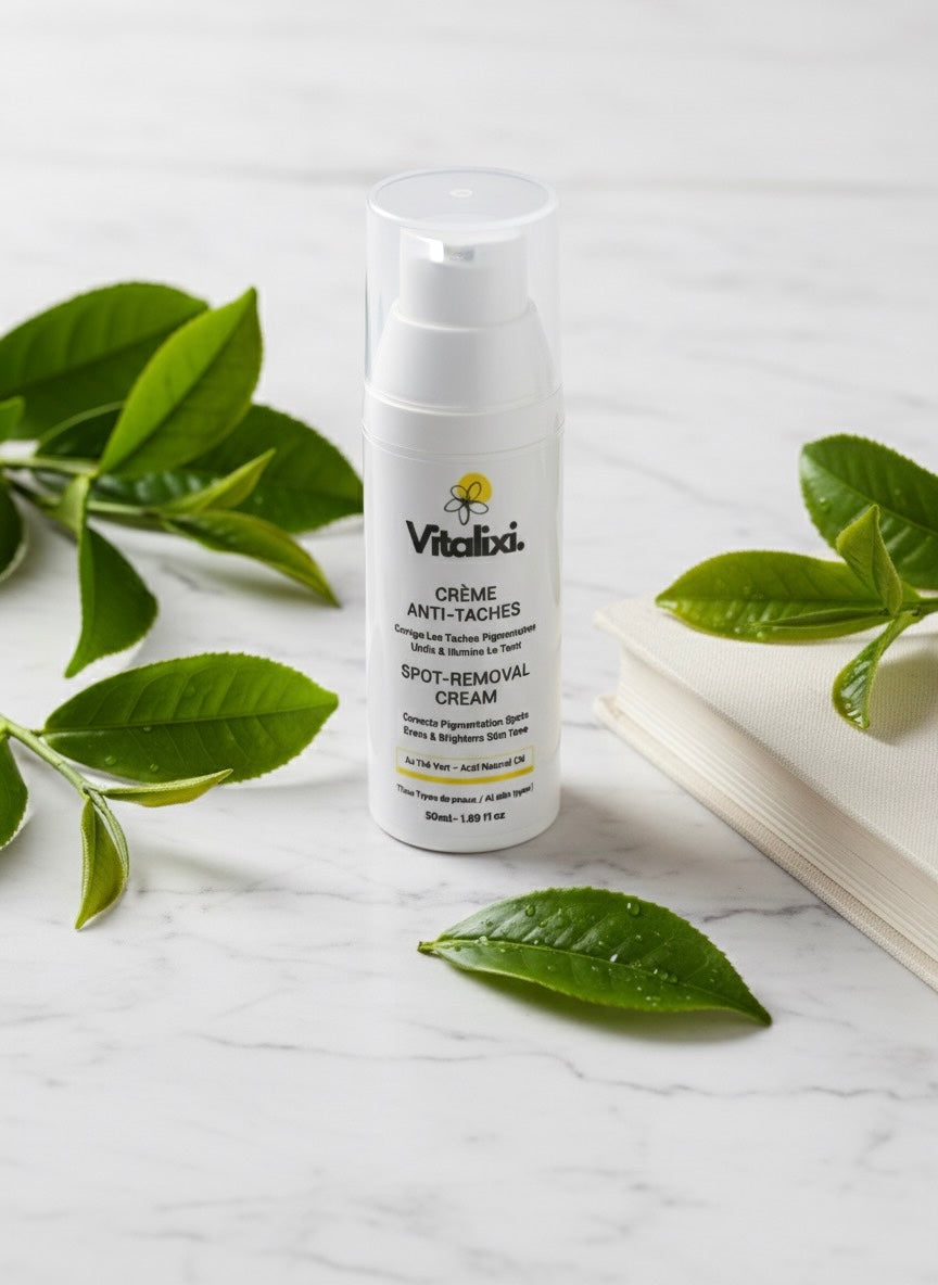 Redécouvrez l’éclat de votre peau avec la Crème Anti-Taches Vitalixi, le soin indispensable pour dire adieu aux taches pigmentaires et retrouver un teint lumineux, uniforme et parfaitement lissé.